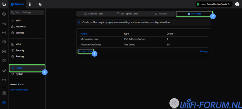 2) Klik op Profiles --> IP Groups en vervolgens op Create New.